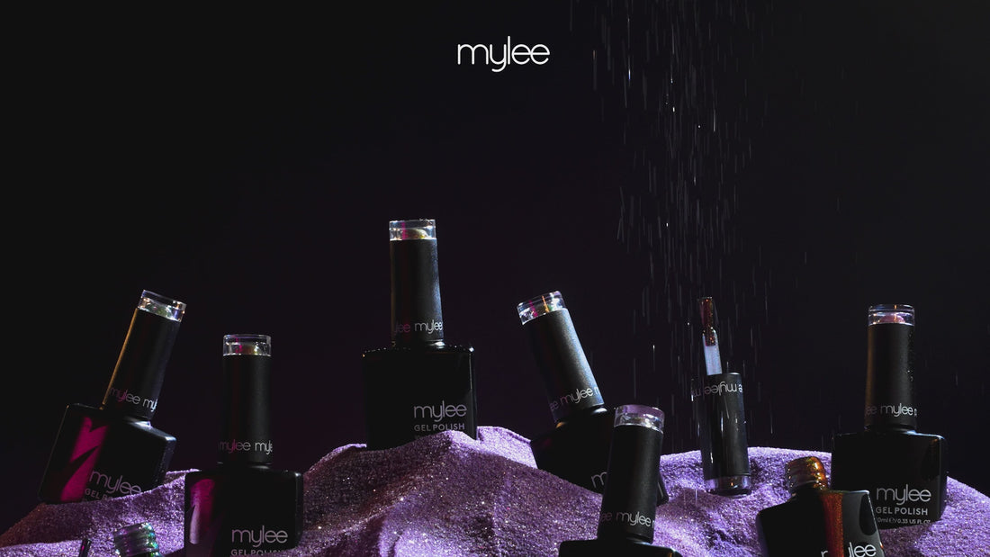 File nails to shape and use a Mylee Buffing Block* to gently remove shine from the nail plate. Wipe your nails with a dash of Mylee 2-in-1 Nail Prep & Wipe* on a Lint Free Wipe* to remove any oils. If you’re prone to lifting, apply the Mylee Dehydrator* followed by the Mylee Acid-Free Primer*.