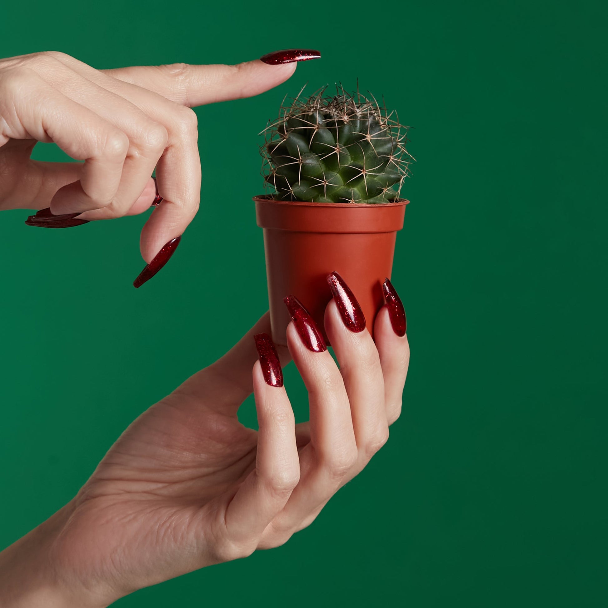 - This deep red glimmers with dazzling fine glitter