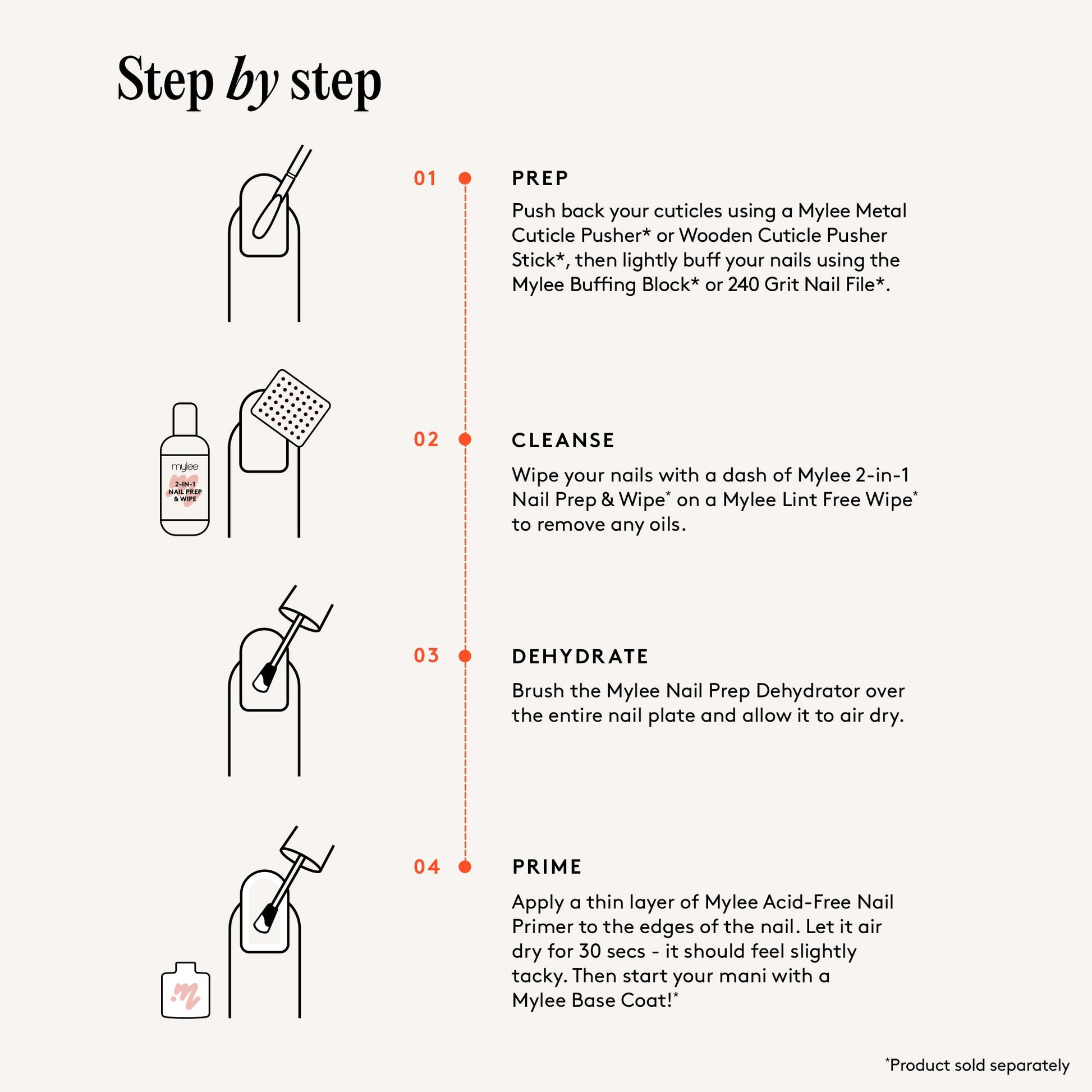 Wipe your nails with a dash of Mylee 2-in-1 Nail Prep & Wipe* on a Mylee Lint Free Wipe* to remove any oils.